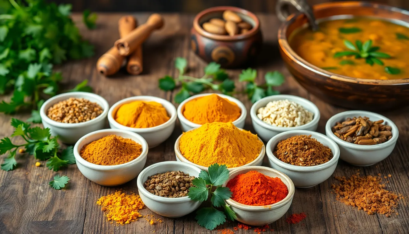 Spices form the backbone of Indian cooking. Common spices include cumin, coriander, turmeric, and garam masala. Each spice adds unique flavor profiles. Cumin seeds, when toasted, release an earthy aroma that complements curries. Garlic and ginger paste serves as a robust base for many dishes. Additionally, chili powder adds heat, balancing flavors in sauces and marinades. Fresh herbs such as cilantro and mint brighten dishes. Their vibrant colors and flavors uplift the presentation and taste. Understanding these spices is crucial for mastering Indian cuisine.